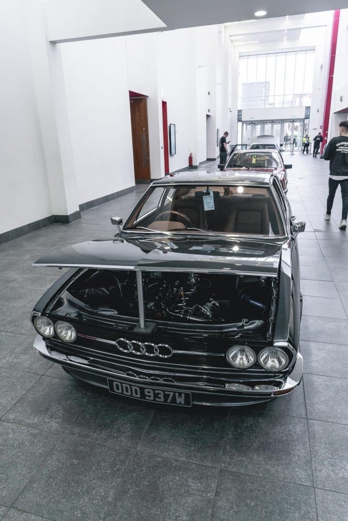 The first thing that caught our eye in the entrance hall was the shape. The Audi 100 S Coupe isn’t something you see every day. In fact, relatively few were produced and even less survive today. It’s such a well proportioned and pretty car, with a sloping fast back roofline.