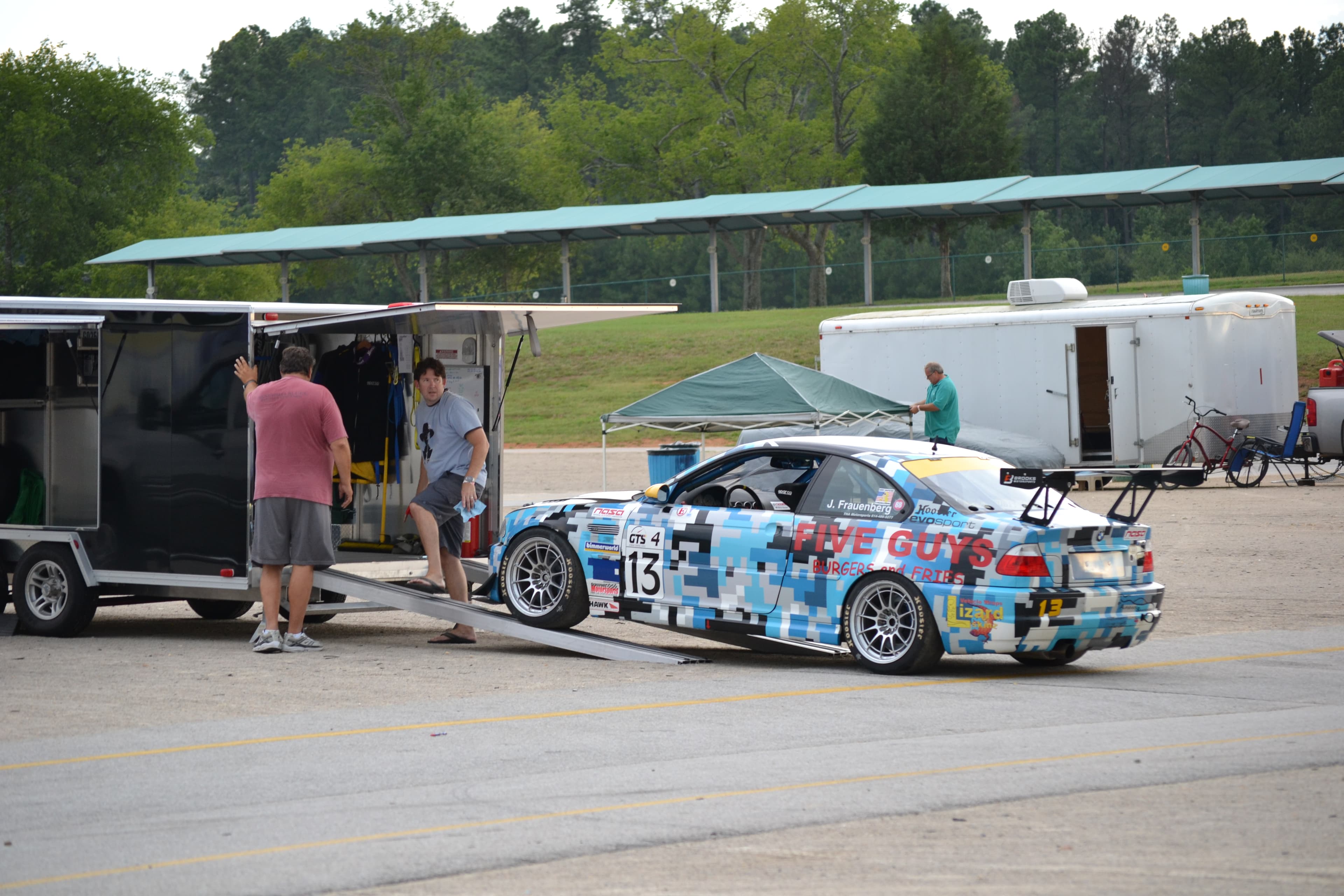 We arrived at VIR in time for technical inspection. This is where the car is looked over for any safety issues or mechanical problems. With that quickly out of the way, we were handed a large pack of stickers required for the competition. The next 2 hours were spent sticker bombing the car and getting set up for the next day. This was also a chance to mingle with the other competitors and answer their questions about our air suspension. Then off to the hotel for a quick nights rest.